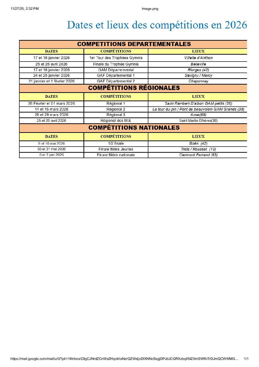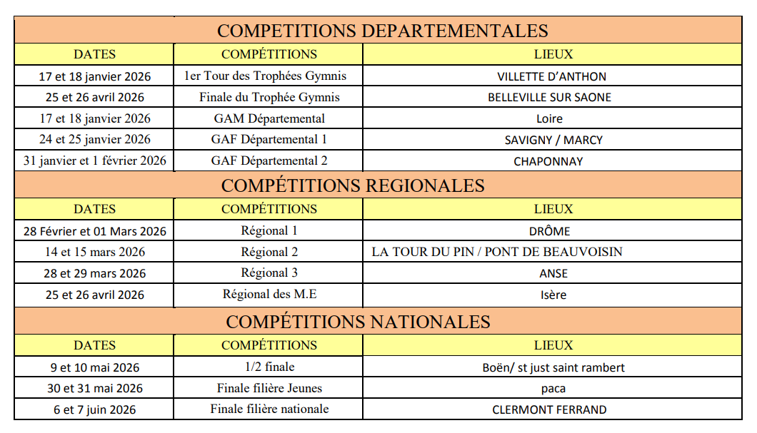 Retrouvez sur cette page toutes les informations sur les compétitions passées et à venir ! ORGANIGRAMME PREVISIONNEL DES COMPETITIONS SAISON 2025 / 2026